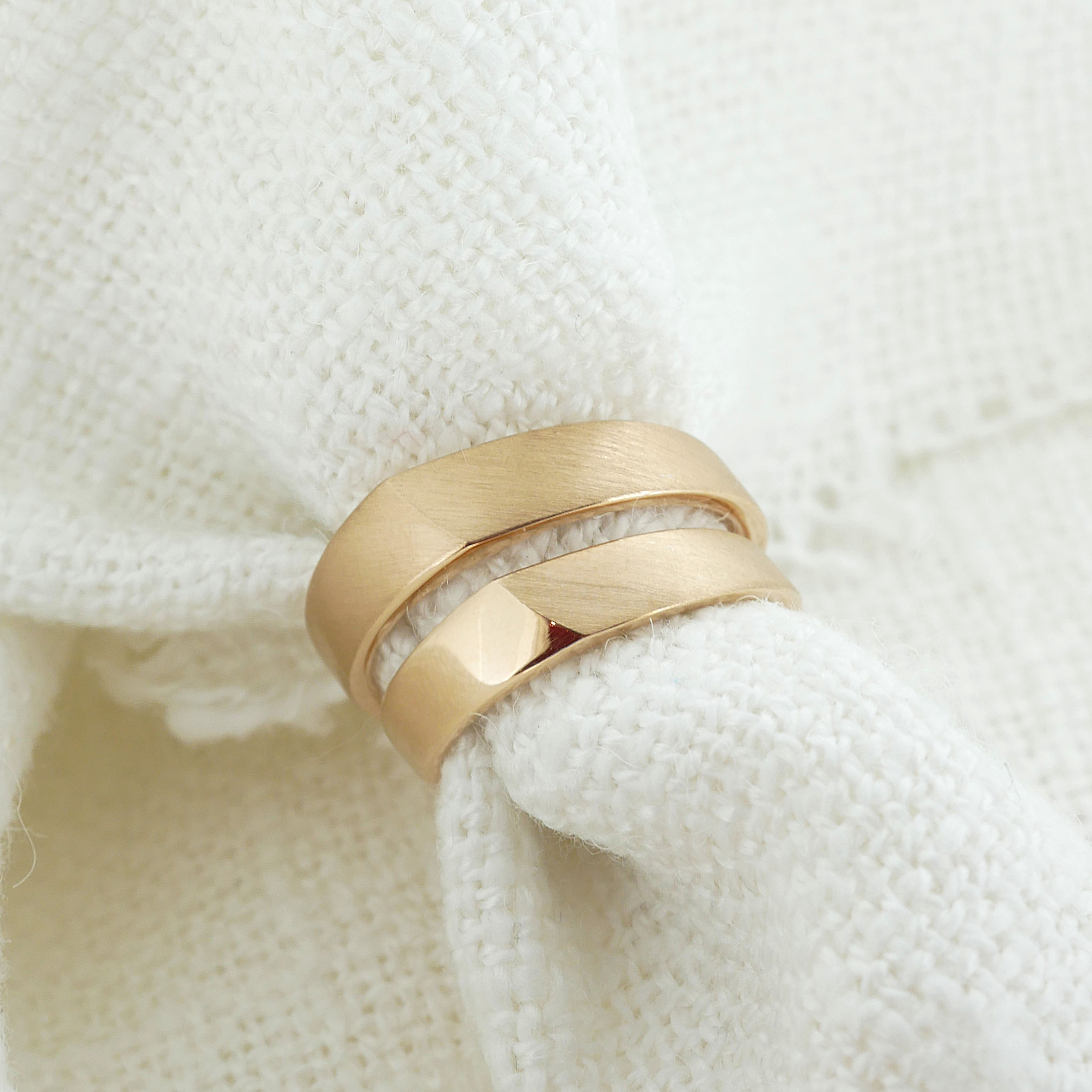 ergonomische trauringe einkant-spalt einkant 585er gelbgold brillantlinie diagonalmatt